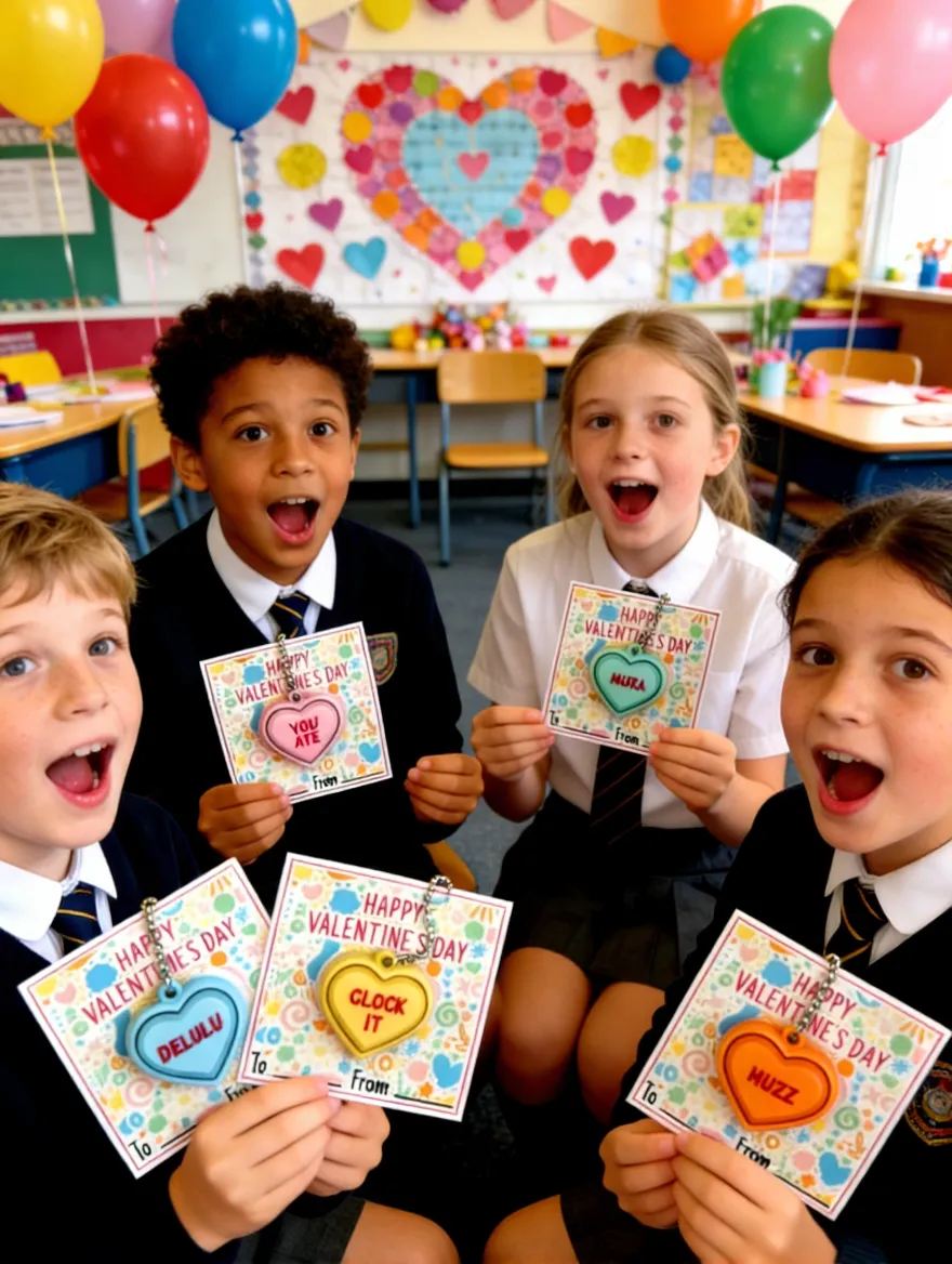 ✔ Complete Classroom Set – 20 heart‑shaped fidget clicker keychains with matching cards – perfect for whole‑class Valentine exchanges